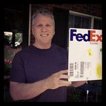 Ken holds his passport and visa delivered from FedEx.